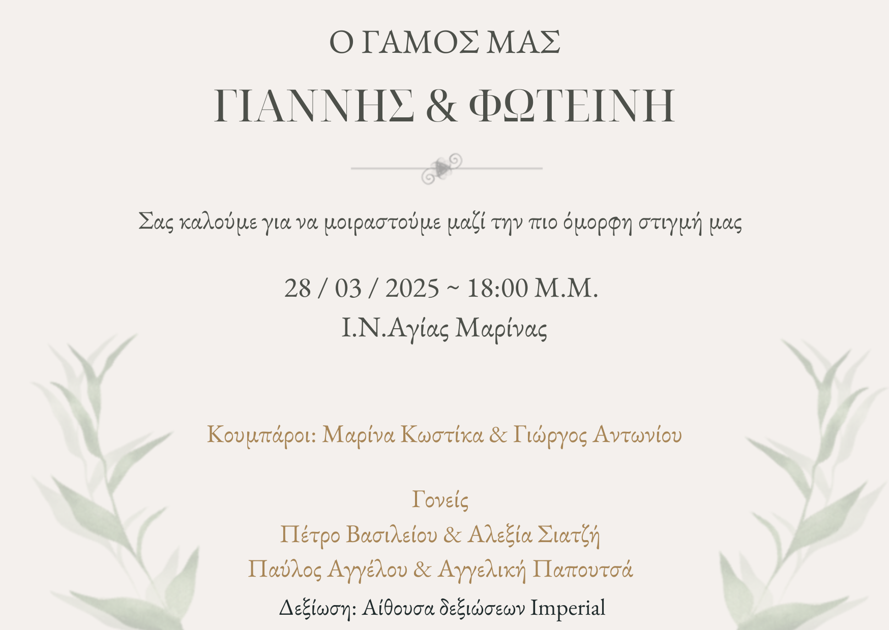 Ανυπομονούμε να γιορτάσουμε την ξεχωριστή μας ημέρα μαζί σας.